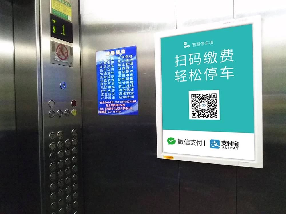 商超很多停车场都位于地下,需通过电梯到达,在等电梯上下行时候,注意力相对集中,去停车场也是为了缴费出场,这时候的物料引导效果非常好。